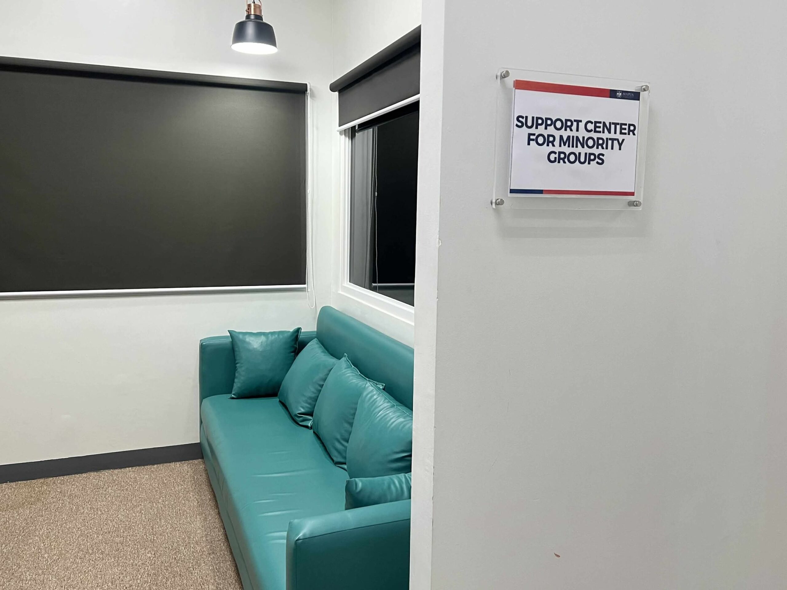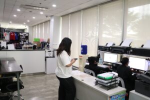 The Admissions, Registrar, and Treasurer's Offices are situated on the first floor, left wing of the Admin Building, highlighting the state-of-the-art design of the campus. Each office is equipped with secure barriers to maintain health safety between clients and staff, underscoring the careful planning of the campus and facilities. The waiting area is also designed with ample spacing for comfort.