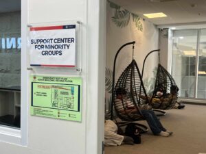 The Hybrid Flexible Classroom setup features evenly spaced chairs to accommodate both in-person and virtual learners, supporting a flexible, interactive learning environment. As part of our advanced campus facilities, the classroom includes technology for seamless integration of online and on-site students, fostering real-time collaboration. This arrangement reflects our commitment to creating adaptable and innovative spaces for effective learning.