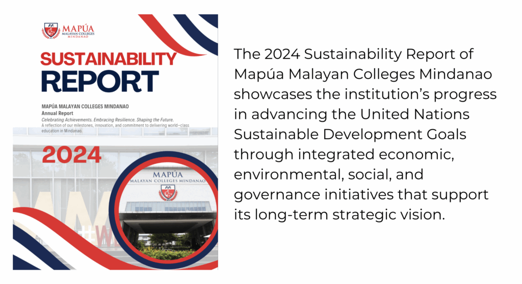 Mapúa Malayan Colleges Mindanao stands firmly committed to fostering a culture of sustainability within its walls and beyond. Guided by unwavering dedication to United Nations’ Sustainable Development Goals (SDGs), the institution strives to cultivate a future where environmental responsibility, social equity, and economic prosperity converge.